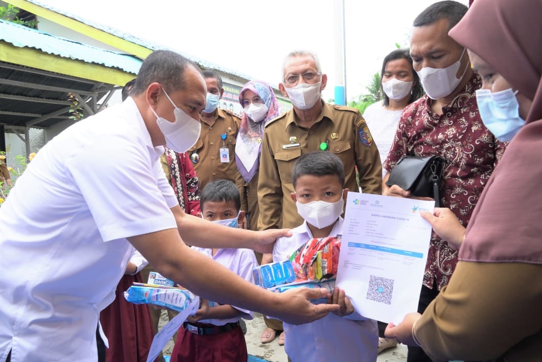 Vaksinasi ini tidak hanya diikuti pelajar SD, tetapi juga para wali siswa dan lansia. Melihat antusias dan apresiasi anak-anak, Bupati Zahir juga memberikan buku tulis dan makanan ringan kepada 200 lebih anak-anak yang sudah melakukan vaksinasi.