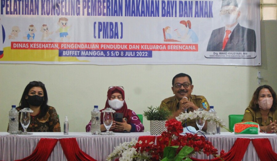 Dinas Kesehatan (Dinkes) Pengendalian Penduduk Dan Keluarga Berencana (P2KB) Kabupaten Batubara mengelar pelatihan konseling pemberian makanan bayi dan anak (PMBA), Selasa (5/7/22) di Aula Buffet Mangga Kec. Sei Suka, Kabupaten Batubara, Sumatra Utara.